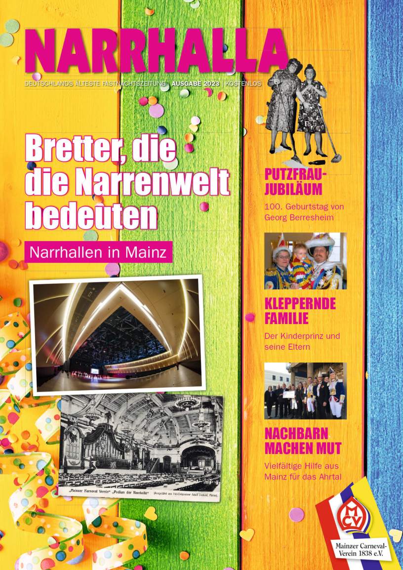 Pünktlich zum 11.11. ist sie fertig geworden – die diesjährige Ausgabe der „Narrhalla“. Die älteste Fastnachtszeitung Deutschlands, gegründet 1841, soll schon jetzt auf die kommende Kampagne einstimmen. „Was wäre eine Kampagne ohne die Narrhalla“, bekennt der neue MCV-Präsident Hannsgeorg Schönig, „sie ist eines der vielen Aushängeschilder des Mainzer Carneval-Vereins, die alljährlich das närrische Geschehen auf publizistische Art und Weise dokumentiert.“